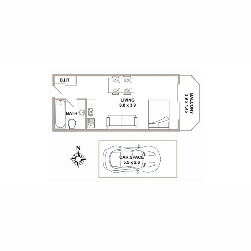 -Open living/sleeping area extends to the balcony