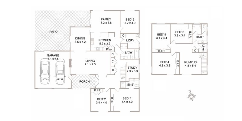 - Family room, upstairs rumpus or TV room. Bed 3 also makes a possible second study or a TV room