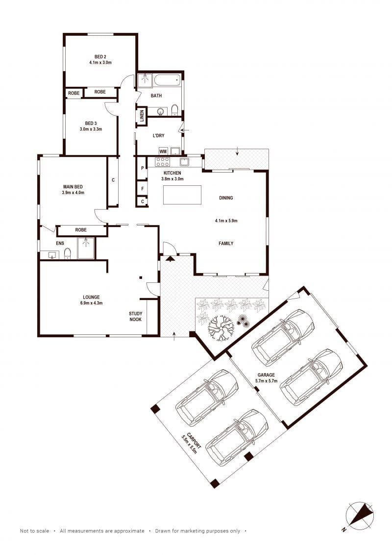 - Double lock-up garage with roller-door access to back yard, plus double carport in front