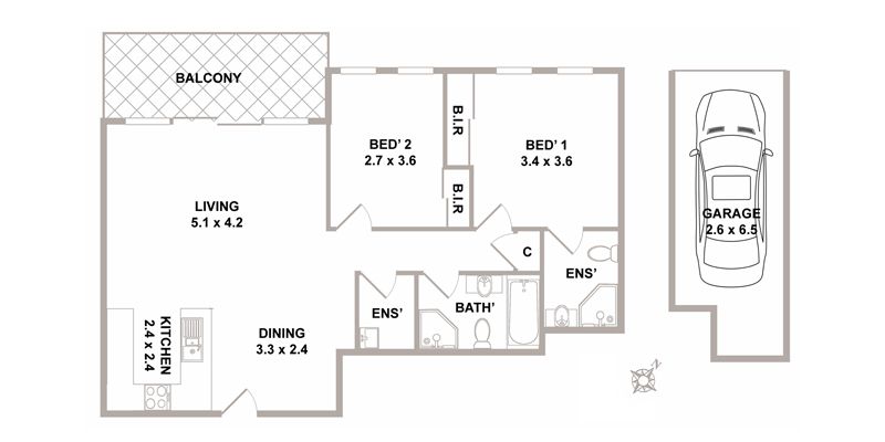 - Both bedrooms feature built in robes